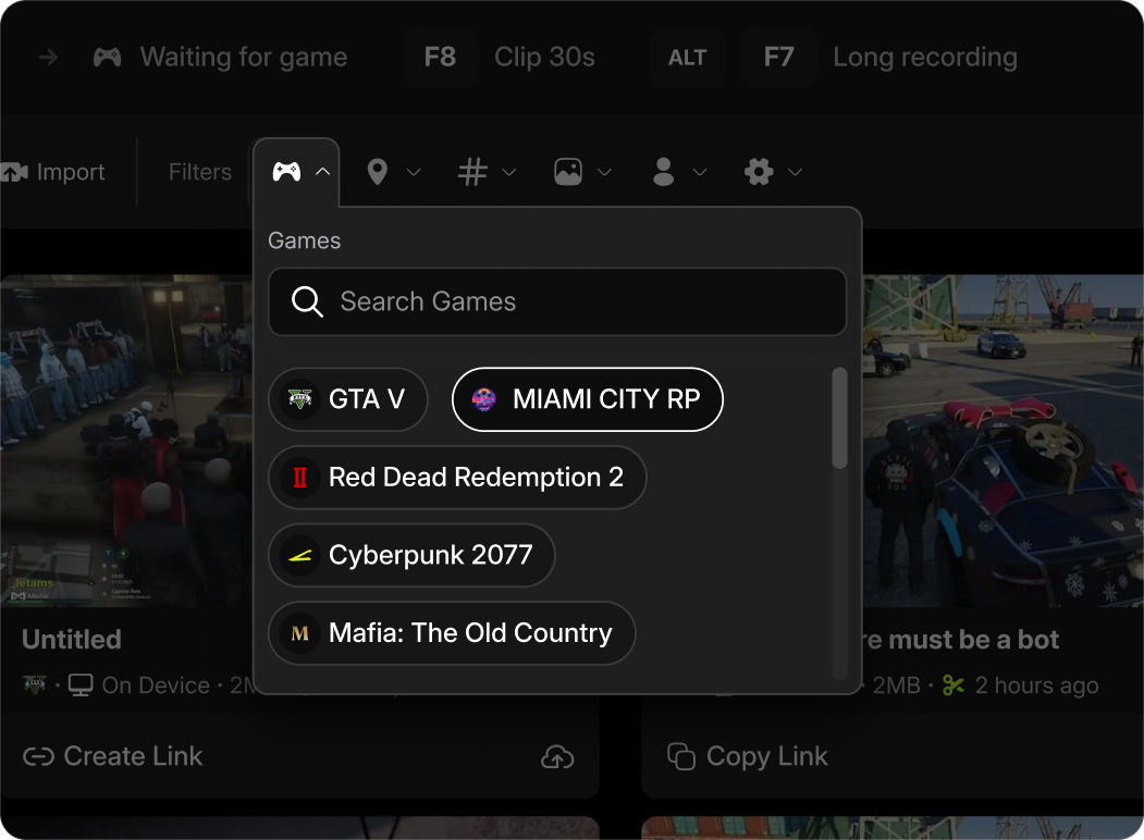 Your Medal library treats every FiveM server as its own game rather than cataloguing every clip as just “FiveM”. This means you can search and sort your library per server. Convenient!