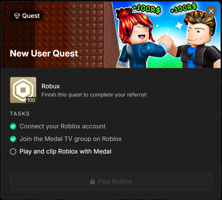 To start earning Robux for your invitations, make sure your Roblox account is connected to Medal, and you’ve joined the Medal Group on Roblox!